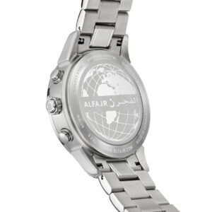 A luxury men’s watch equipped with dual time (analog and digital) displaying the date and prayer times. Polished stainless steel frame. Scratch resistant sapphire glass. Multi-function crown. And stainless steel bracelet. The port and the crystal screen. They are available in white or black